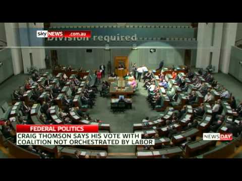 Embattled federal MP Craig Thomson has voted with the coalition to prevent the government gagging shadow treasurer Joe Hockey in parliament - but Opposition Leader Tony Abbott and Manager of Opposition Business Christopher Pyne have fled the chamber to avoid his vote having effect.